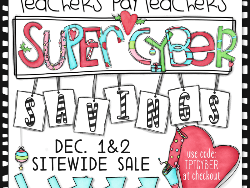 Teachers Pay Teachers is throwing a huge Cyber Monday sale from December 1st through the 2nd. Check out all of the great products out there and get 28% off by using their code TPTCYBER. Thanks to the 3am Teacher for the cybersale banner!