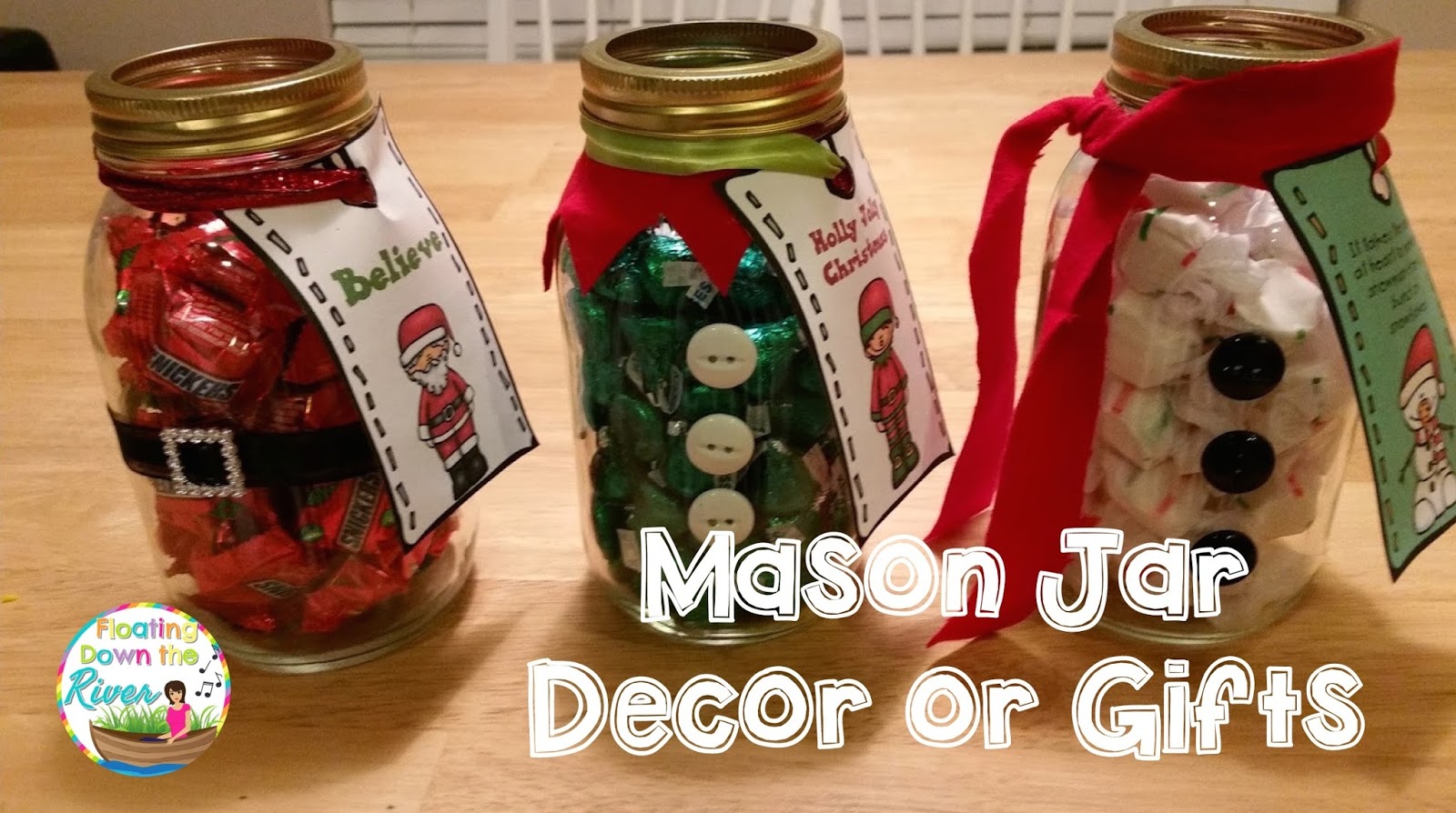 I brought in a couple of festive table coverings I had at home, some cute christmas stars that stack, and these mason jar treat containers that could also be gifts. I found this cute idea on Pinterest from the Polk a Dot Chair Blog HERE. . Their tag links were expired, so I made my own. Get the directions and tags for free Here.