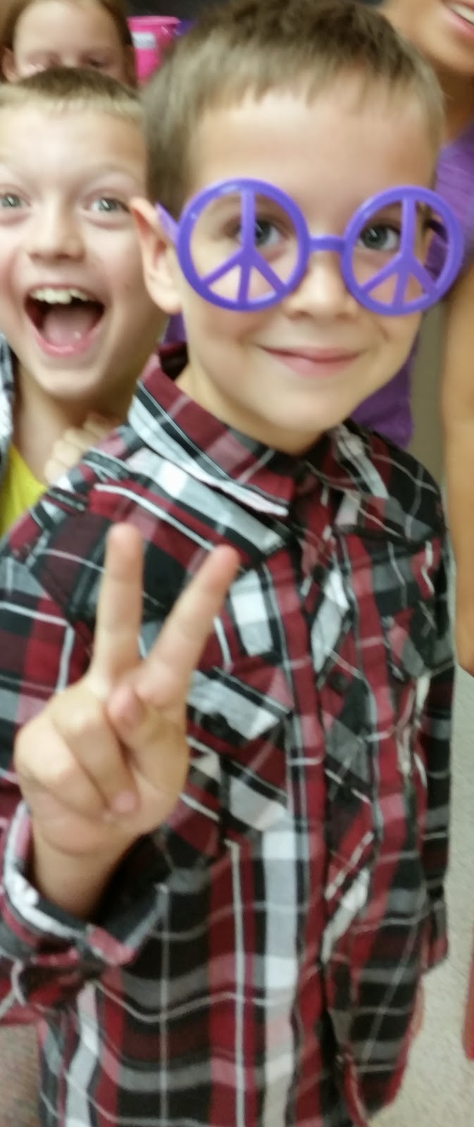 I made two bulletin boards. One is my Citizen of the Day Board. I have a person of the day every year around my theme. This year, my citizen of the day will be wearing his or her choice of 6 colors of peace sign glasses. The student will sit my well worn VIP chair, get first turns on games, lead vocal play first, and help with anything else that needs to be helped. Other privileges are to get a piece of laffy taffy, to get unlimited drinks during class, and to get to go to the bathroom one time without asking. (students normally are not allowed to go to the bathroom during class). I made 50 words with 50 definitions and used them in 50 sentences to put on my citizen of the day bulletin board.